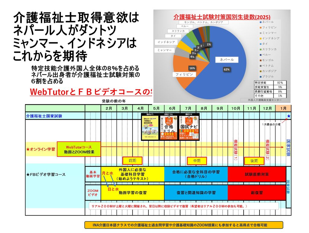 現場シフトに迷惑をかけさせません!とにかく桁違いの安さと合格率の高さを確認ください、特定技能外国人たちが必ず合格できる介護福祉士国家試験対策FBビデオコースが完ぺきになりました。