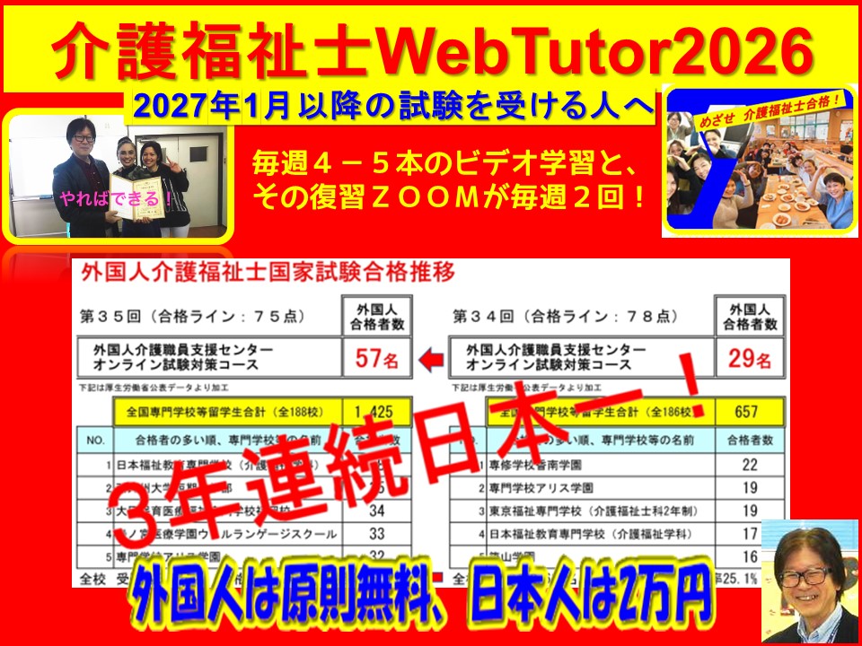 WebTutor2021 第34回国家試験 外国人合格者 29名(通年ZOOM授業あり)